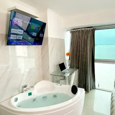 Ecusuites Studio Two Riverfront Con Jacuzzi Hidro Privado is ingericht met een bureau en voorzieningen zoals airconditioning, naast breedbandinternet en een flatscreen TV met satellietzenders. Rookmelders maken deel uit van de veiligheidsvoorzieningen op de kamer. Dit appartement kan 1 badkamer aanbieden. Er zijn ook een droger en handdoeken.