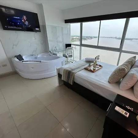 1-slaapkamer Ecusuites Studio Two Riverfront Con Jacuzzi Hidro Privado is voorzien van parkeerplaatsen en draadloos internet en ligt in de Puerto Santa Ana wijk. Dit 55 m^2 grote appartement is op 300 meter afstand van Museo De Los Equipos Del Astillero en op slechts 650 meter van Las Peñas.